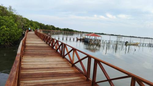 1. เดินชมบรรยากาศบนสะพานไม้บานา