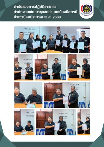 วันที่ 19 มกราคม 2569 สำนักงานพัฒนาชุมชนอำเภอเมืองปัตตานี โดยนายไพรัช ณ ถลาง พัฒนาการอำเภอเมืองปัตตานี ลงนามคำรับรองการปฏิบัติราชการกรมการพัฒนาชุมชน ประจำปีงบประมาณ พ.ศ. 2569 ร่วมกับเจ้าหน้าที่พัฒนาชุมชน เพื่อให้การดำเนินงานตามคำรับรองการปฏิบัติราชการกรมการพัฒนาชุมชนของสำนักงานพัฒนาชุมชนอำเภอเมืองปัตตานี เพื่อให้การดำเนินโครงการ/กิจกรรมเป็นไปตามกรอบแนวทางของกรมให้เกิดประสิทธิภาพ บรรลุวัตถุประสงค์ตามแผนยุทธศาสตร์การพัฒนาชุมชน และเป็นกรอบแนวทางในการประเมินผลการปฏิบัติราชการ ในรอบที่ 1 (ระหว่างวันที่ 1 ตุลาคม 2568 - 31 มีนาคม 2569)