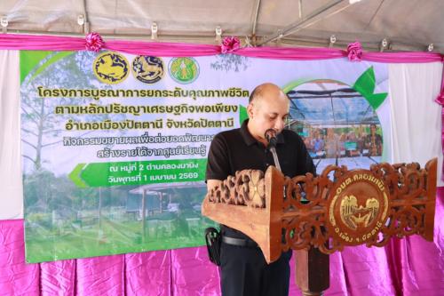 วันที่ 1 เมษายน 2569 สำนักงานพัฒนาชุมชนอำเภอเมืองปัตตานี โดยนายไพรัช ณ ถลาง พัฒนาการอำเภอเมืองปัตตานี มอบหมายให้นายสาโรช แก้วคง นักวิชาการพัฒนาชุมชนชำนาญการ และนายจิระเดช สุทธิประภา ณ ร้อยเอ็ด เจ้าพนักงานพัฒนาชุมชนปฏิบัติงาน ร่วมเป็นเกียรติพิธีเปิดโครงการบูรณาการยกระดับคุณภาพชีวิต ตามหลักปรัชญาของเศรษฐกิจพอเพียงอำเภอเมืองปัตตานี จังหวัดปัตตานี กิจกรรมขยายผลเพื่อต่อยอดพัฒนาอาชีพสร้างรายได้จากศูนย์เรียนรู้ ในพื้นที่หมู่ 2 บ้านคลองมานิง ตำบลคลองมานิง
